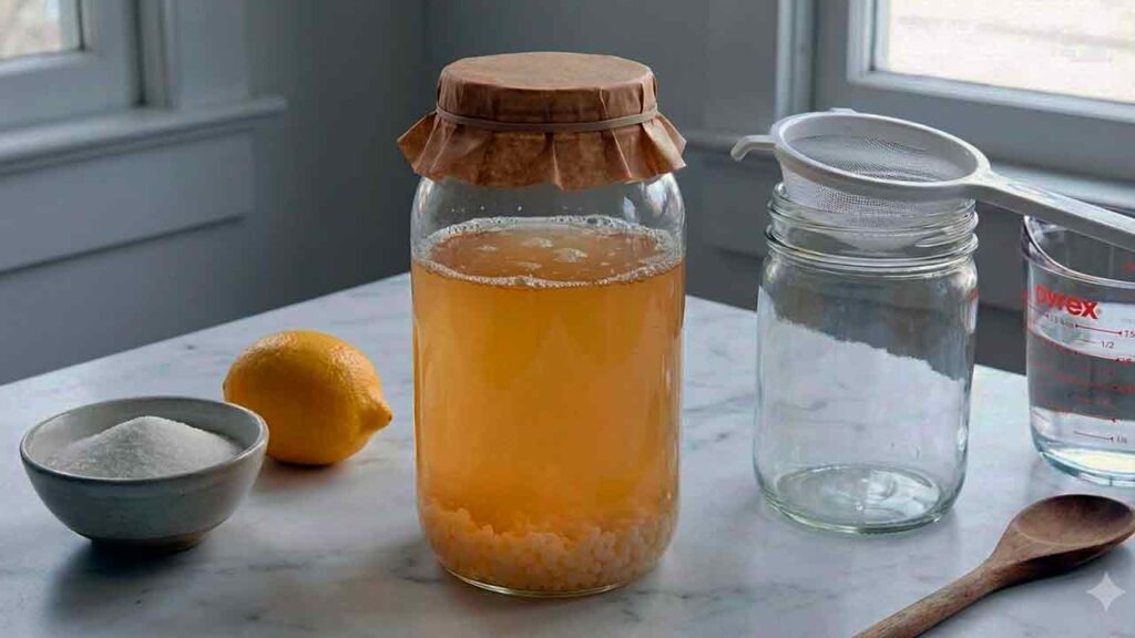 Live Water Kefir Grains. - π Optional: 1 slice of lemon or fig (for minerals).